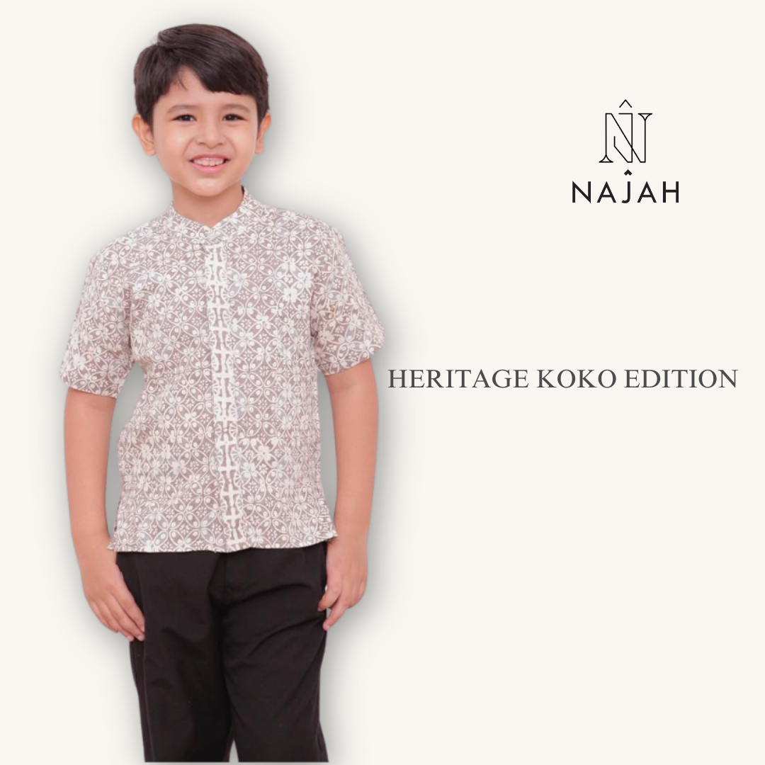 Celebrate tradition with the Heritage Collection, Crafted from premium dobby cotton for a soft and comfortable fit. Designed with the iconic Kawung batik motif, this collection blends cultural heritage with modern style. The elegant combination of gray tones enhances the timeless appeal, making it perfect for special occasions, family gatherings, or festive celebrations. Let your child embrace sophistication and tradition with the Heritage Collection—a perfect harmony of comfort and elegance.